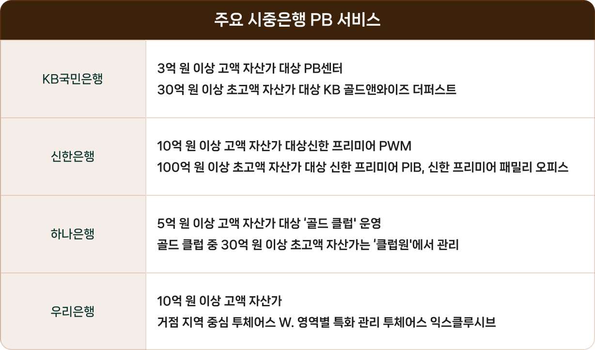 주요 시중은행에서 제공하고 있는 PB 서비스 소개 ⓒKB국민은행, 신한은행, 하나은행, 우리은행