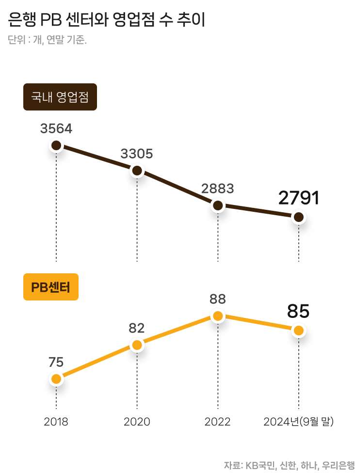 은행 영업점의 감소 추세와 달리 PB 센터는 꾸준히 늘어나고 있다.