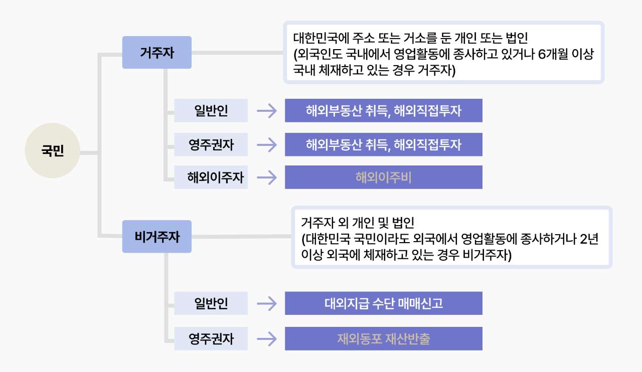 ‘비거주자’의 경우도 일반인과 영주권자로 구분됩니다. 비거주자인 일반인은 대외지급 수단 매매신고 방식을, 비거주 영주권자는 재외동포 재산반출 방식을 활용할 수 있습니다.