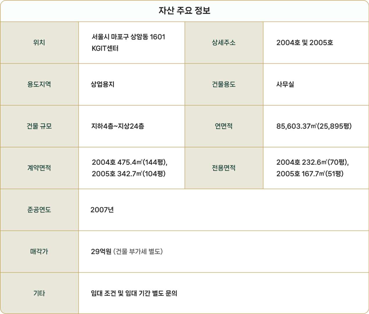 2021년 K회장님은 잘나가던 중견기업을 매각하고 새로운 사업으로 방향을 전환합니다. 회사를 매각하고 사용하지 않게 된 사무실 KGIT센터 2004호와 2005호는 각각 다른 2개의 기업에 임차를 주었습니다. 직원들에게 편안한 ‘사무공간’이었던 곳이 이제는 연 5% 이상의 월 임대수익이 나오는 안정적인 ‘수익공간’으로 치환된 것입니다.