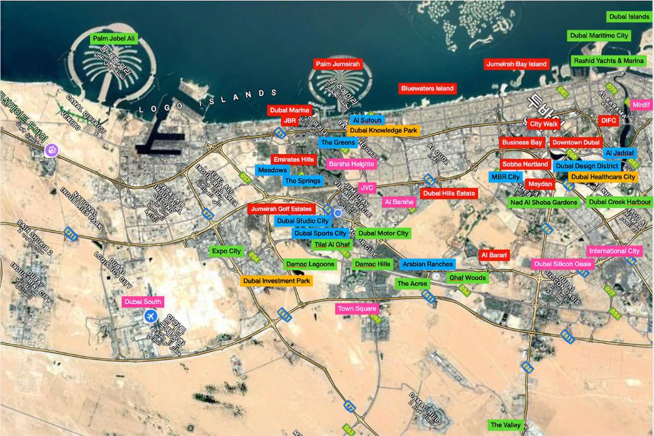 두바이 핵심지역을 5가지 유형으로 분류한 모습 Ⓒ슬로디미디어 블로그, 재인용=<나는 세금없는 두바이에서 집 산다>