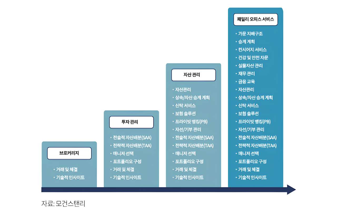 첫째, 더욱 정교한 고객 세분화를 통해 금융자산 규모뿐만 아니라 부의 원천, 연령, 가족 구성 등 다각적 요소를 고려한 맞춤형 서비스가 확대돼야 합니다. 특히 초고액자산가를 위한 패밀리 오피스 서비스와 생애주기별 맞춤 서비스가 강화돼야 합니다. 둘째, 자문 서비스의 유료화와 수익 모델이 다변화되어야 합니다. 현재의 상품 판매 중심 수익 구조에서 벗어나 자산관리 자문 서비스에 대한 자문료 체계와 성과 연동형 보수 체계가 구축되어야 한다는 의미죠. 이는 해외 금융회사에서는 너무 당연한 환경이기도 합니다.